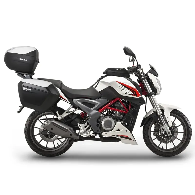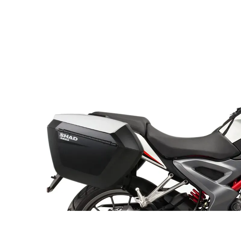 El nuevo sistema de fijación lateral 3P System SHAD B0BN27IF se caracteriza por: - Diseño integrado: La fijación lateral queda mejor integrada en la moto. - Ligereza: Su menor peso hace que apenas se modifique el centro de gravedad de la moto, lo que mejora la seguridad. - Fácil de montar.