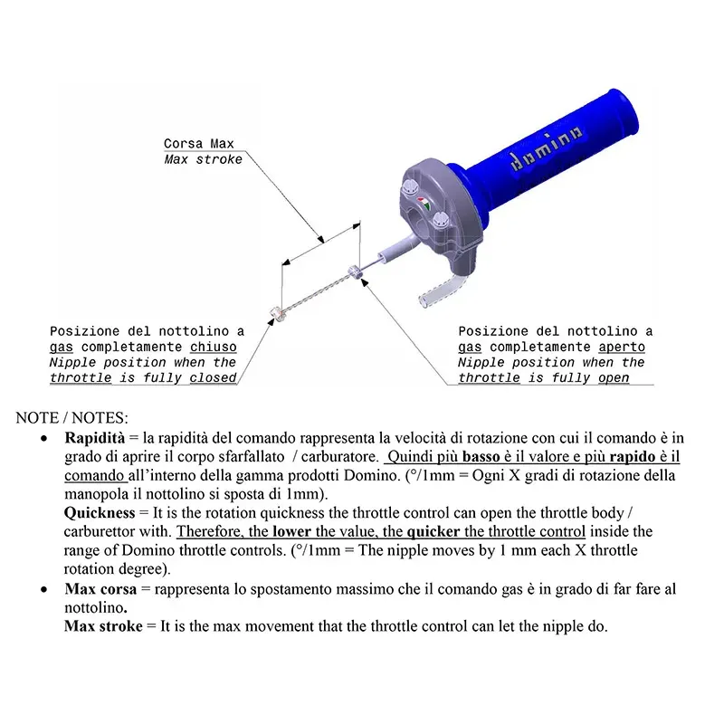 Acelerador Domino 2350.03 de aluminio con guardapolvos y puños modelo 1150 negros cerrados.