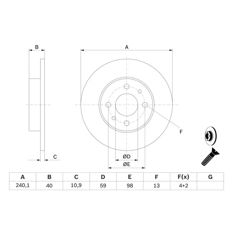 BOSCH 0986478342 Disco de freno (Unidad)