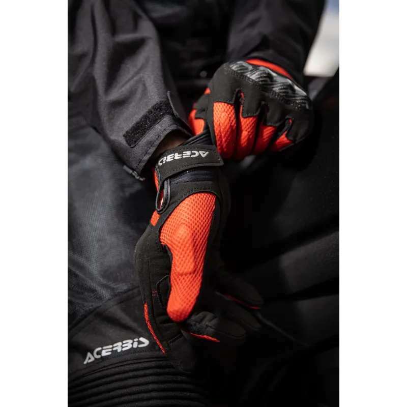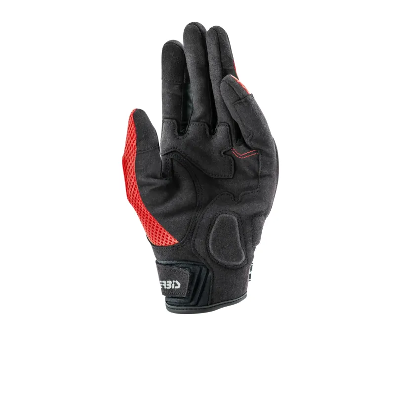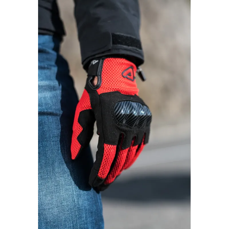 Los guantes Acerbis modelo Ramsey MY Vented de color rojo y negro, son extremadamente transpirable gracias a la malla en la parte posterior y en los laterales de los dedos.