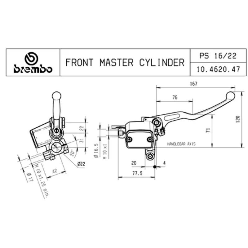 BOMBA DE FRENO DELANTERO BREMBO RACING AXIAL PS 16 CON DEPÓSITO 10462047