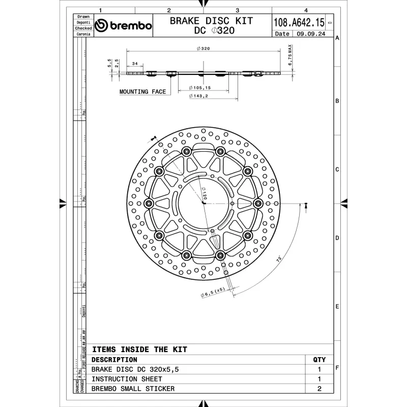 Disco de freno Brembo HPK 320mm 108A64215 El disco de freno 108A64215 es sinónimo de fiabilidad El disco de freno Brembo se puede intercambiar sin problemas con el disco de primer equipamiento. Gracias al control del ciclo completo de producción, Brembo es capaz de ofrecer discos de freno con excelentes prestaciones, fiabilidad, duración y confort en cualquier condición de uso. Todos los discos Brembo tienen homologación ECE-R90. Equivalente al OE Calidad Brembo TÜV-Zertifikat Seguridad Rendimiento Estilo exclusivo Inspirado en las carreras Conducción deportiva