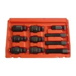 Características principales: ✅ 15 medidas incluidas para máxima cobertura en motos y scooters. ✅ Roscados métricos de M14 a M33 con pasos 1.0, 1.25 y 1.5 según aplicación. ✅ Eje de empuje con punta templada para extracción segura y lineal. ✅ Acero tratado en cuerpos y adaptadores para uso intensivo en taller. ✅ Compatible con volantes de encendido y rotores de múltiples fabricantes. ✅ Minimiza riesgo de dañar roscas, chaveta o extremo de cigüeñal. ✅ Suministrado en maletín organizado con identificación de medidas.