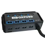 Caja de distribución eléctrica 12V Oxford EL112 para moto, con relé, LED de estado y corte por contacto. 4 salidas protegidas (5A) para puños calefactables, luces auxiliares, GPS y accesorios.